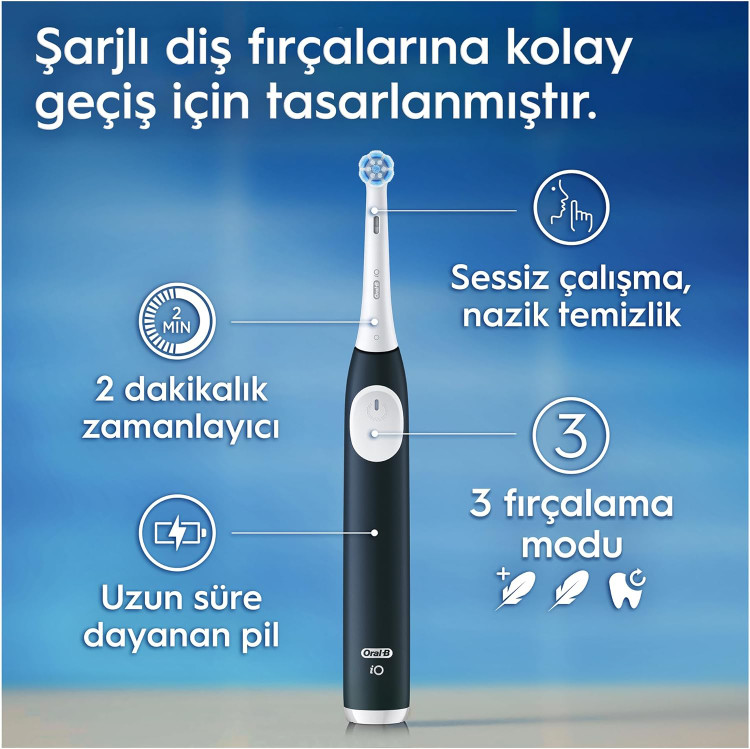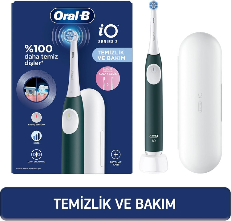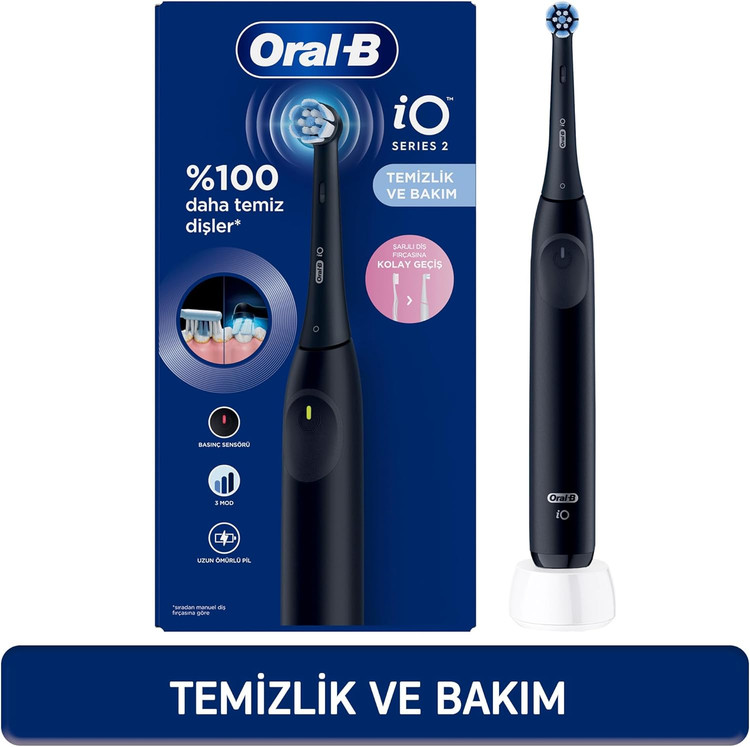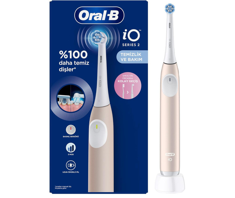 مسواک شارژی **Oral-B iO 2** با ترکیب میکرو ارتعاشات و سری گرد مسواک تمیزی بهینهای ارائه میدهد. سری مسواک **Oral-B iO** باید هر ۳ ماه یکبار تعویض شود.